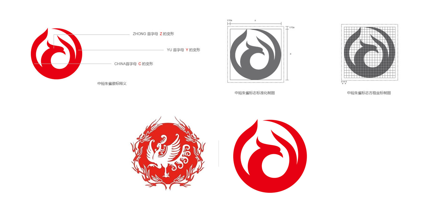 基本概念: 依然借助“朱雀是太陽鳥、火鳳凰、日精,是中國四大靈獸之一,是太陽的化身”的傳統(tǒng)文化內涵。取其掌控能源、服務大眾、安全、恒久、吉祥、生生不息之涵義,與中裕行業(yè)性質和企業(yè)文化相吻合。