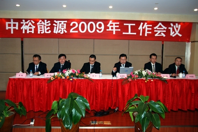 "2月11日至12日,“中裕能源2009年工作會議”于鄭州大河國際飯店順利召開。會議由常務副總裁黎巖先生主持,董事局領(lǐng)導、管理總部經(jīng)營班子及各部門負責人、各子公司高管及先進單位/個人代表參加了會議。
