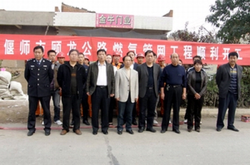 偃師公司訊 10月14日上午,偃師市顧龍公路燃?xì)廨斉涔芫W(wǎng)工程順利開工建設(shè)。龐村鎮(zhèn)鎮(zhèn)長郭海濤、副書記張俊龍、副鎮(zhèn)長張冠軍,承建單位偃師中裕燃?xì)庥邢薰究偨?jīng)理段區(qū)高及施工單位負(fù)責(zé)人參加了開工儀式。至此,顧龍公路管道燃?xì)夤こ踢M(jìn)入了實(shí)質(zhì)性的進(jìn)展階段。