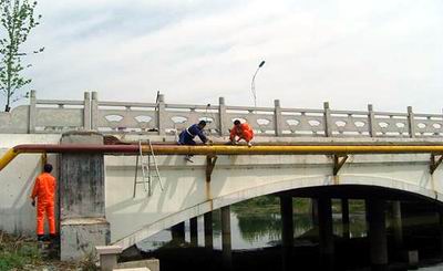 期間,針對架空管道排檢、維護過程中存在的無專業(yè)維護人員、無高空作業(yè)設施、無專門除銹及噴漆設備等困難,臨沂中燃公司員工在嚴格貫徹落實"安全第一、預防為主、厲行節(jié)約、綜合整治"方針的前提下,抽調(diào)巡線及門站工作人員,自己動手對輸配管網(wǎng)系統(tǒng)中的架空管道、門站露天設備等進行了全面除銹防腐工作,有效提高了設備的耐腐蝕性和安全運行的可靠性,大大延長了設備的使用壽命。