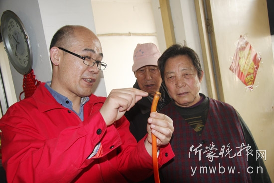 工作人員給居民指出存在的安全隱患