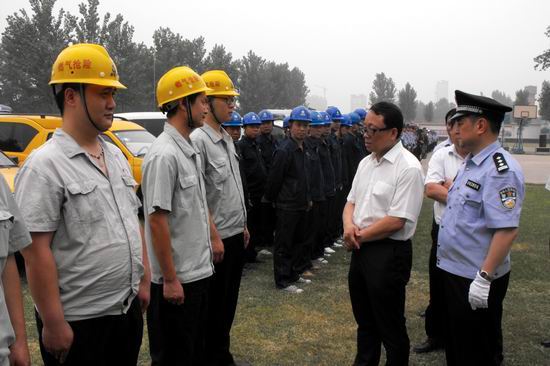 當(dāng)天上午10:00,隨著沁陽市反恐辦主任、公安局局長鄧予生通過數(shù)字對講機(jī)下達(dá)指令,沁陽市反暴恐緊急拉動演練活動正式開始,演練科目包括:應(yīng)急指揮→快速反應(yīng)→整體開進(jìn)→應(yīng)急通信→現(xiàn)場指揮→現(xiàn)場處置→活動講評等。各參與單位各有不同的演練任務(wù),沁陽分公司的任務(wù)是配備專業(yè)搶險車2輛、隊員10人攜帶搶險設(shè)備,迅速到達(dá)現(xiàn)場,做好對燃?xì)庠O(shè)施搶修的準(zhǔn)備。整個演練場面氣勢恢宏,各項(xiàng)動作緊張而有序,所有參演人員都精神飽滿、熱情高漲,展示了各參演單位應(yīng)急力量良好的精神風(fēng)貌,11:00整演練結(jié)束。