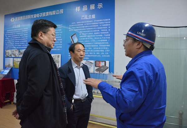 魯總一行在參觀洛陽龍海電子玻璃有限公司生產(chǎn)車間