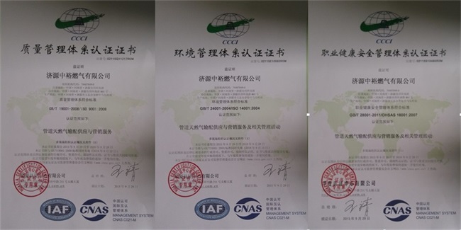 濟(jì)源公司訊 10月26日,濟(jì)源公司拿到了ISO9001、ISO14001、OHSAS18001 三項(xiàng)管理體系認(rèn)證證書,于各兄弟公司中率先通過“三標(biāo)”管理體系一體認(rèn)證。