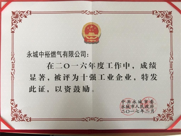 首獲“十強工業(yè)企業(yè)”榮譽