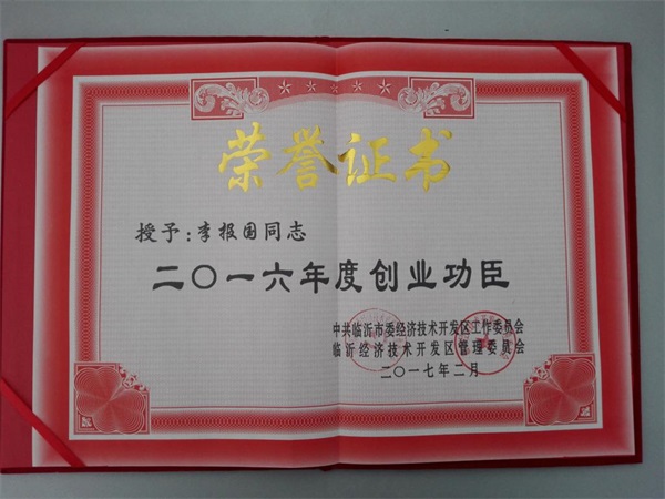 大會回顧了開發(fā)區(qū)2016年的整體工作開展情況,部署了2017年的重點工作,并對為開發(fā)區(qū)建設(shè)做出突出貢獻的先進集體和個人進行了表彰。臨沂中裕能源獲授2016年度“功勛企業(yè)”榮譽稱號,董事長李報國先生獲授“創(chuàng)業(yè)功臣”榮譽稱號。